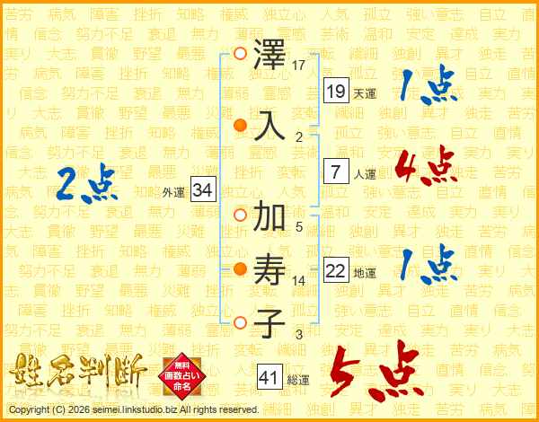 澤入加寿子さんの総運は41画の5点!
