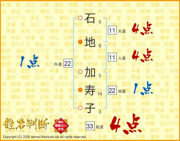 石地加寿子さんの総運は33画の4点!