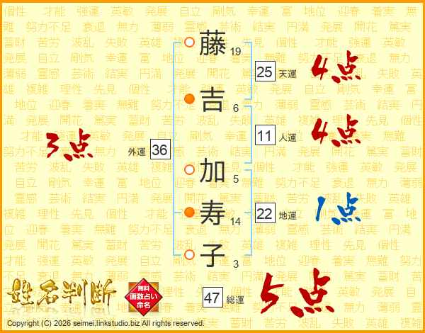 藤吉加寿子さんの総運は47画の5点!