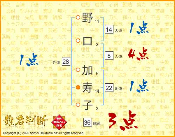 野口加寿子さんの天運は14画の1点!