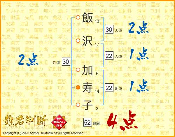 飯沢加寿子さんの総運は52画の4点!
