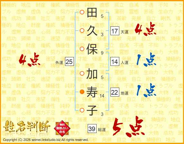 田久保加寿子さんの総運は39画の5点!