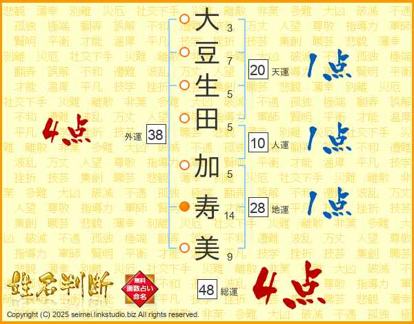 大豆生田加寿美さんの外運は38画の4点!