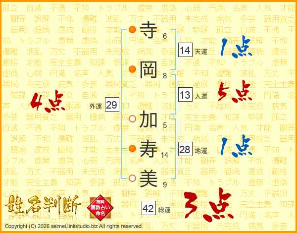 寺岡加寿美さんの人運は13画の5点!