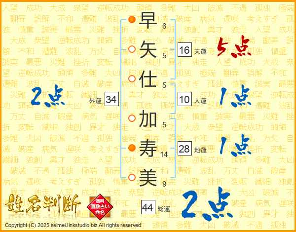 早矢仕加寿美さんの総運は44画の2点!