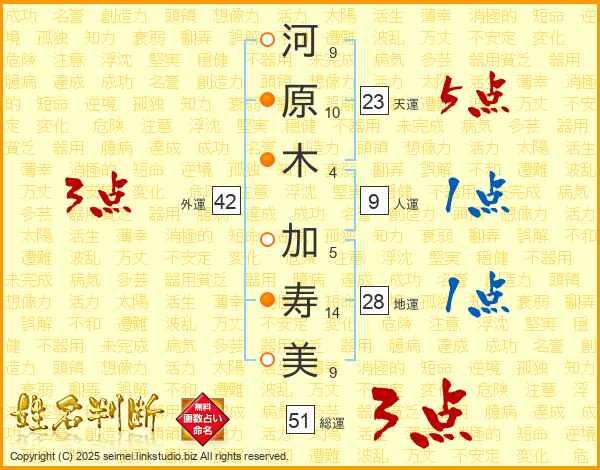 河原木加寿美さんの天運は23画の5点!