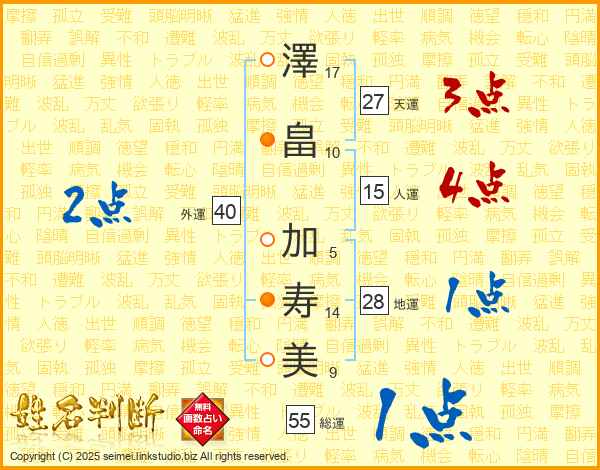 澤畠加寿美さんの人運は15画の4点!