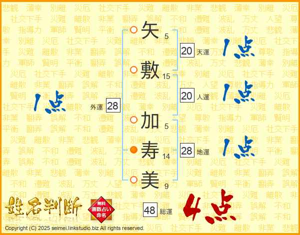 矢敷加寿美さんの総運は48画の4点!