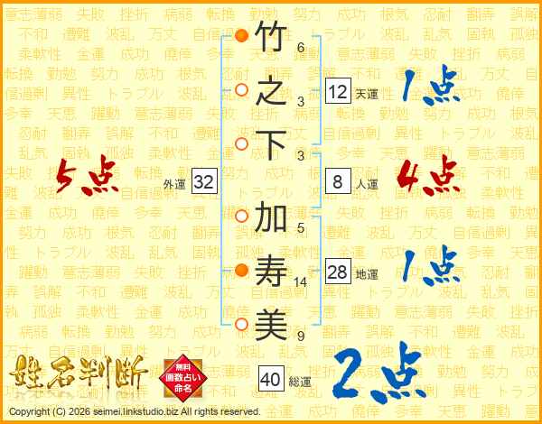 竹之下加寿美さんの外運は32画の5点!
