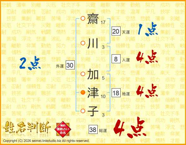 齋川加津子さんの総運は38画の4点!