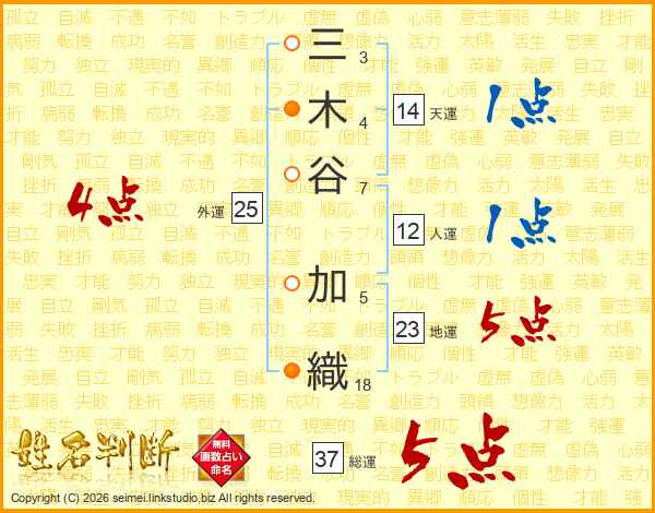 三木谷加織さんの総運は37画の5点!