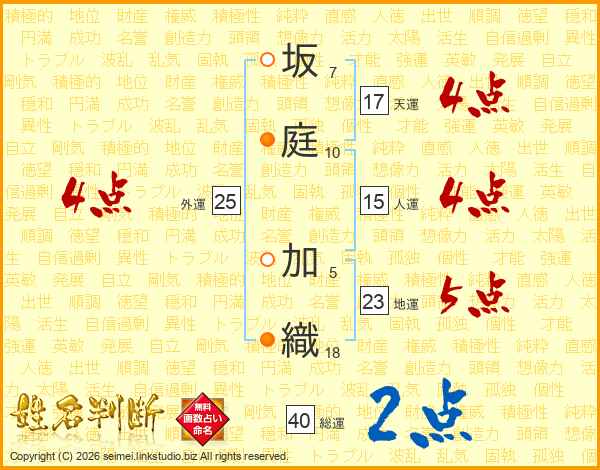 坂庭加織さんの総運は40画の2点!