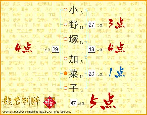小野塚加菜子さんの総運は47画の5点!