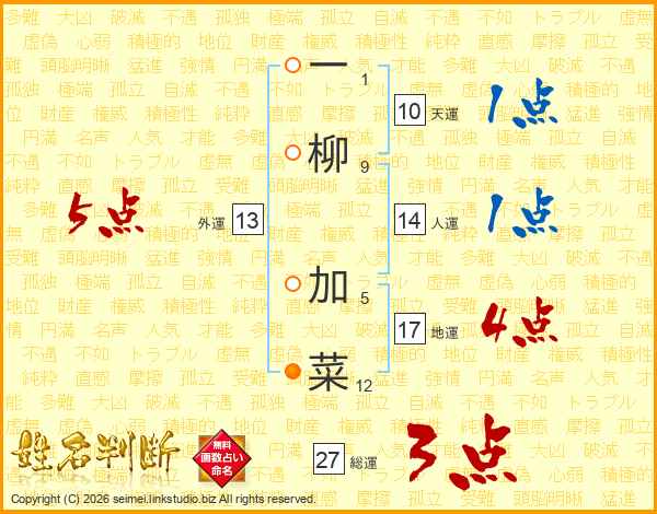 一柳加菜さんの外運は13画の5点!