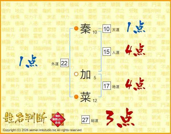 秦加菜さんの総運は27画の3点!