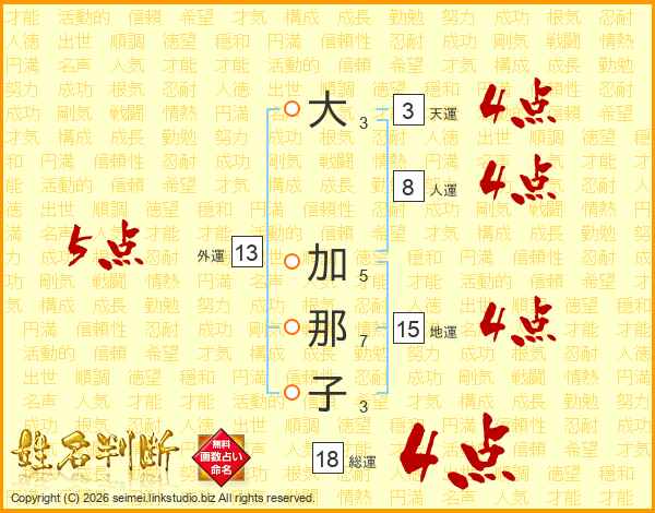 大加那子さんの総運は18画の4点!