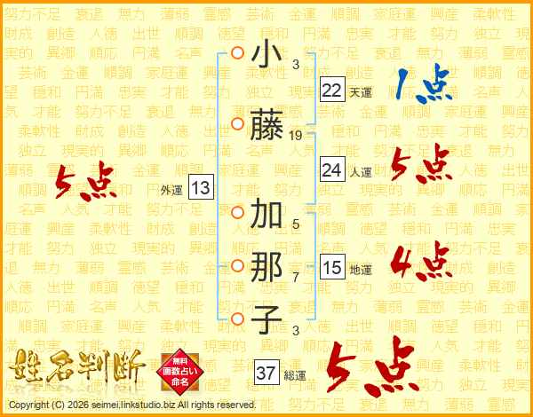 小藤加那子さんの総運は37画の5点!