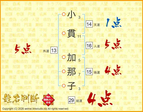 小貫加那子さんの総運は29画の4点!