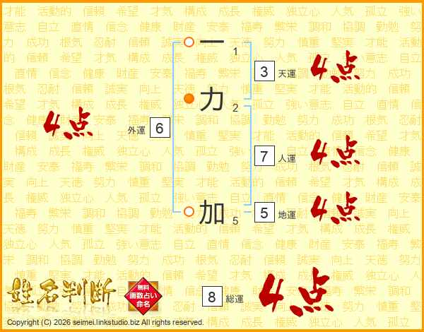 一力加さんの総運は8画の4点!
