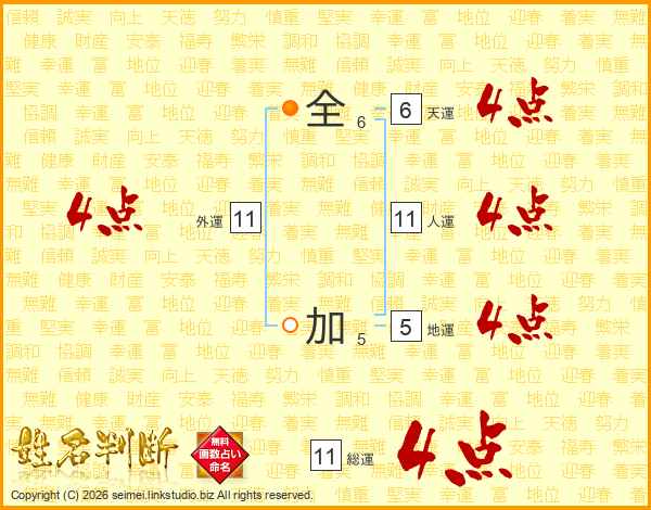 全加さんの総運は11画の4点!