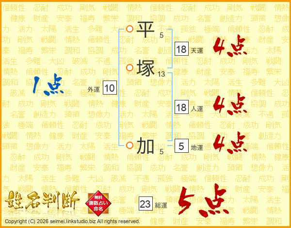平塚加さんの天運は18画の4点!