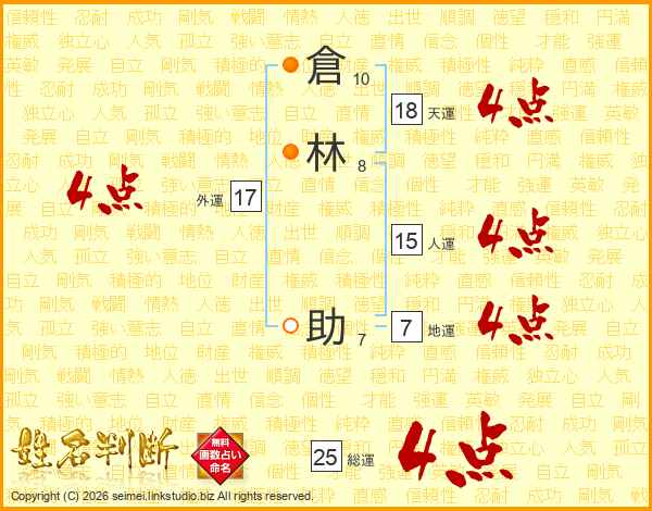 倉林助さんの天運は18画の4点!