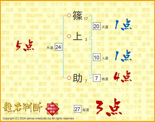 篠上助さんの外運は24画の5点!
