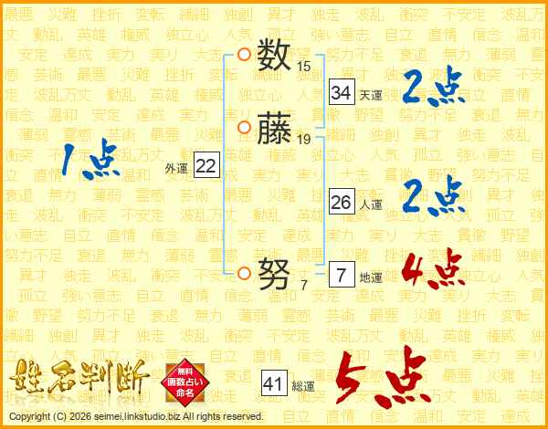 数藤努さんの総運は41画の5点!