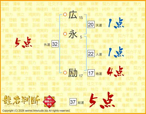 広永励さんの総運は37画の5点!