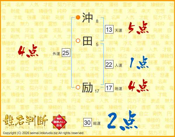 沖田励さんの総運は30画の2点!