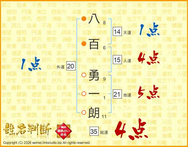 八(8画)百(6画) 勇(9画)一(1画)朗(11画)