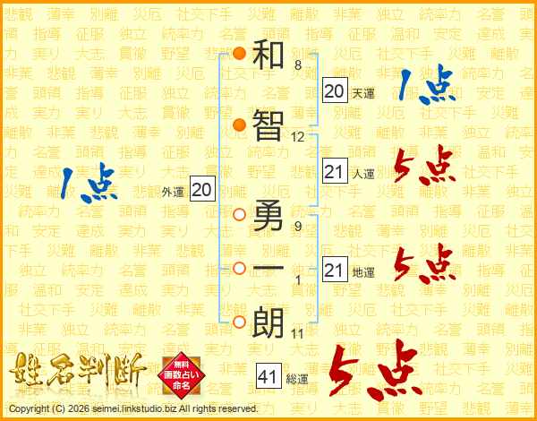 和(8画)智(12画) 勇(9画)一(1画)朗(11画)