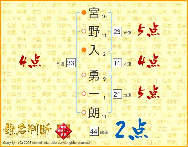 宮野入勇一朗さんの総運は44画の2点!
