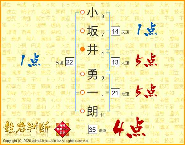 小坂井勇一朗さんの総運は35画の4点!