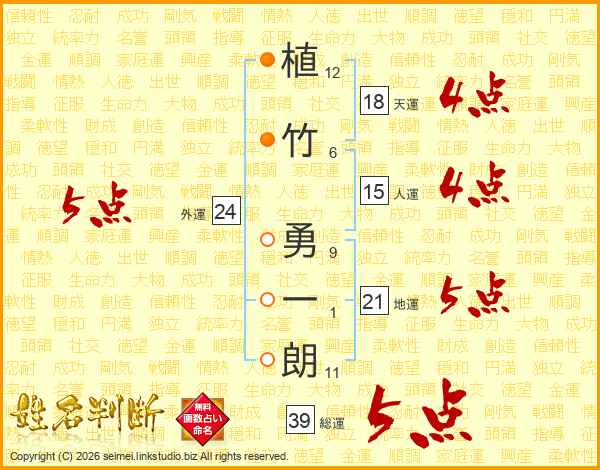 植竹勇一朗さんの総運は39画の5点!