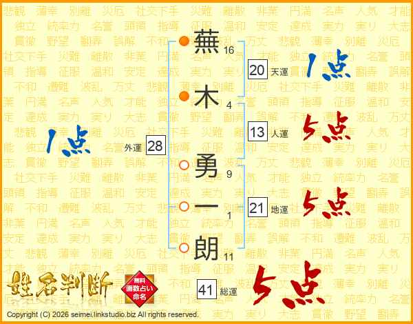 蕪木勇一朗さんの人運は13画の5点!