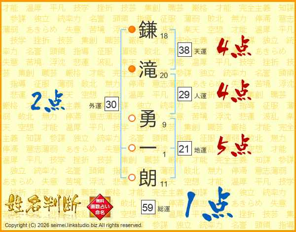 鎌滝勇一朗さんの天運は38画の4点!