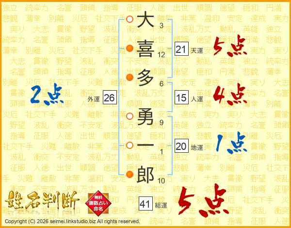 大喜多勇一郎さんの天運は21画の5点!