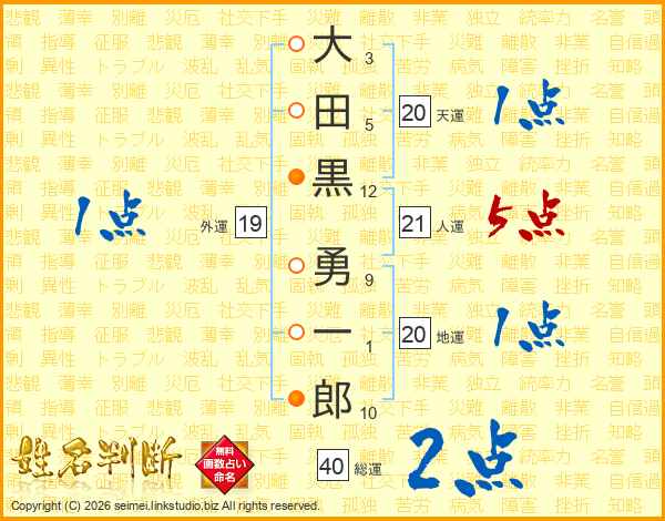 大田黒勇一郎さんの人運は21画の5点!
