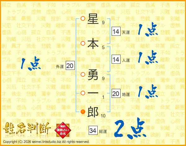 星(9画)本(5画) 勇(9画)一(1画)郎(10画)
