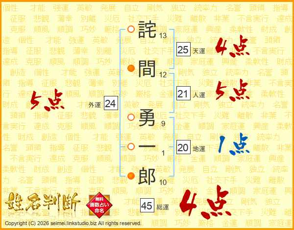 詫間勇一郎さんの総運は45画の4点!
