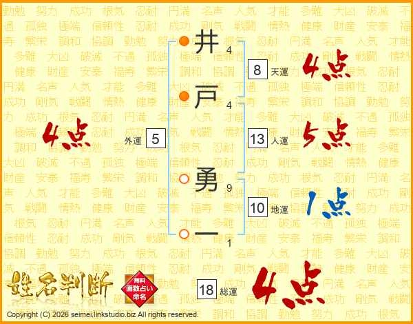 井戸勇一さんの総運は18画の4点!