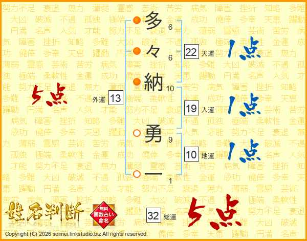 多(6画)々(6画)納(10画) 勇(9画)一(1画)