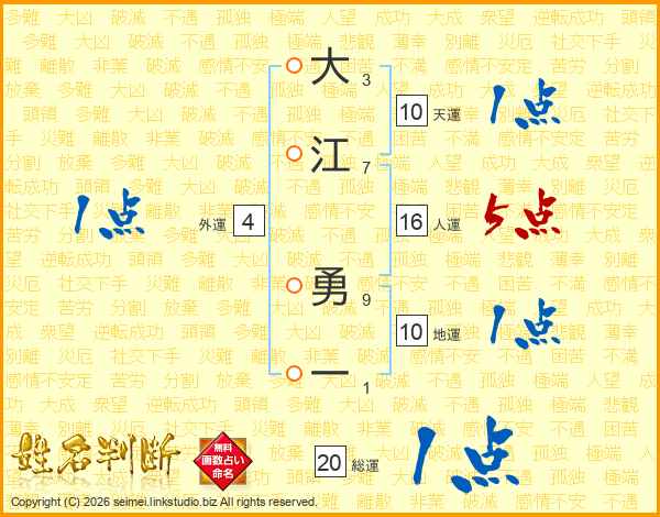 大江勇一さんの人運は16画の5点!