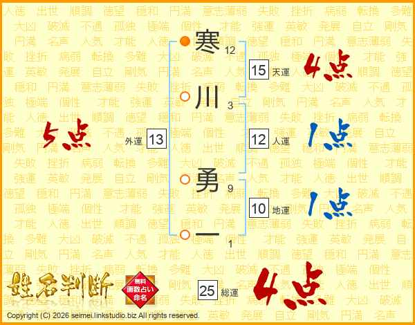 寒川勇一さんの総運は25画の4点!