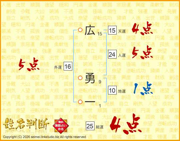広勇一さんの総運は25画の4点!
