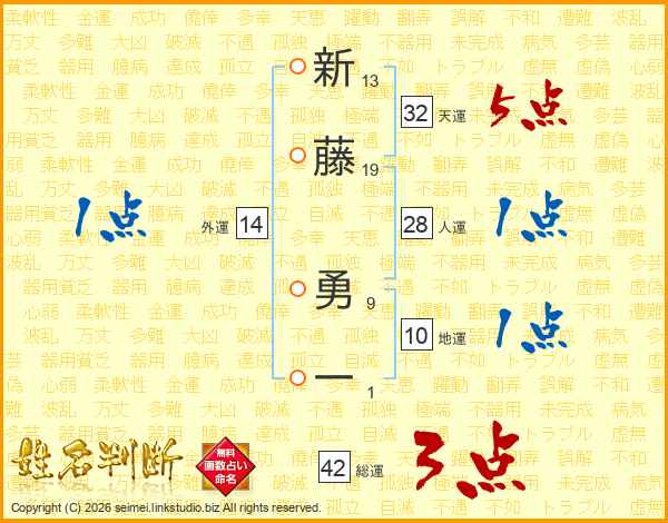 新藤勇一さんの総運は42画の3点!