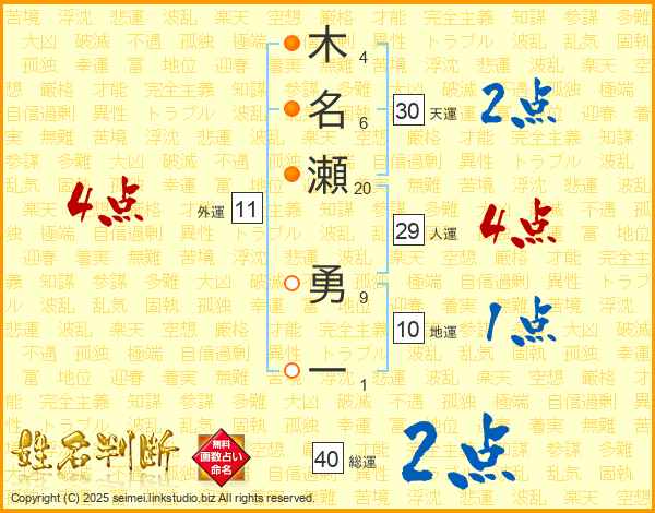木名瀬勇一さんの人運は29画の4点!