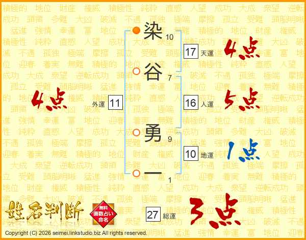 染谷勇一さんの総運は27画の3点!