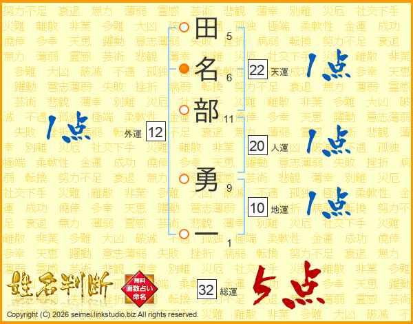 田名部勇一さんの総運は32画の5点!